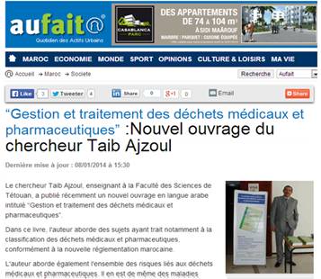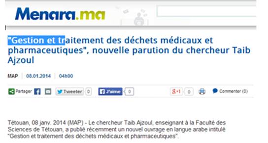 http://www.menara.ma/fr/2014/01/08/965772-gestion-et-traitement-des-d%C3%A9chets-m%C3%A9dicaux-et-pharmaceutiques-nouvelle-parution-du-chercheur-taib-ajzoul.html